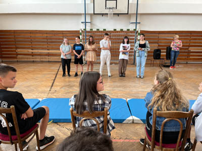 Alapiskolába mentünk, ahol a diákok korosztályos szlovákiai diákokkal