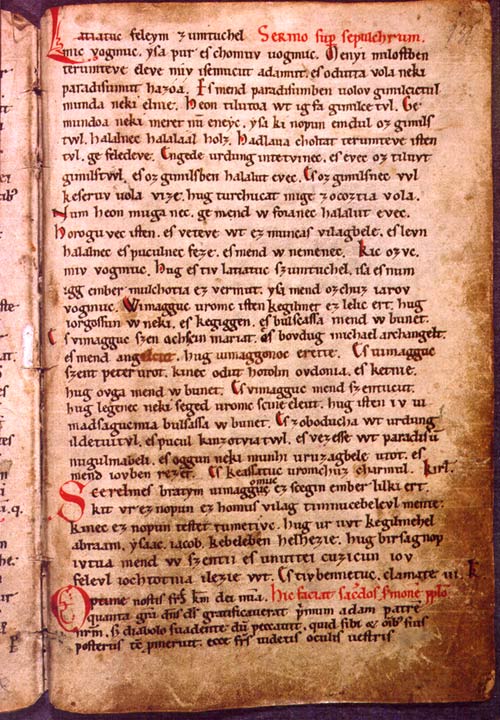 körül keletkezett. Látjátuk feleim szümütükhel, mik vogymuk: isa, pur es homou vogymuk. Menyi milosztben terümtevé elevé miü isemüköt, Ádámut, es odutta volá neki paradicsumut hozoá. És mend paradicsumben volou gyimilcsektűl munda neki élnie. Heon tilutoá űt igy fá gyimilcsétűl. Gye mundoá neki méret nüm eneik: isa, ki nopun emdül oz gyimilcstűl, halálnek halááal holsz. Hadlavá holtát terümtevé istentűl, gye feledevé. Engede ürdüng intetüínek, es evél oz tilvut gyilmilcstűl. Es oz gyimilcsben halálut evék. Látjátok, feleim, szemetekkel, mik vagyunk: isa, por és hamu vagyunk. Mennyi malasztban teremté eleve (úr) mi ősünket, Ádámot, és adta vala neki paradicsomot házzá. És mind(en), paradicsomban való gyümölcsöktől monda neki élnie. Heon tiltá őt egy fa gyümölcsétől. De mondá neki, mért ne ennék: "isa, (a)ki napon eendel az(on) gyümölcstől, halálnak halálával halsz." Hallá holtát teremtő istentől, de feledé. Engede ördög intetének, és evék az(on) tiltott gyümölcstől, és az(on) gyümölcsben halált evék. |